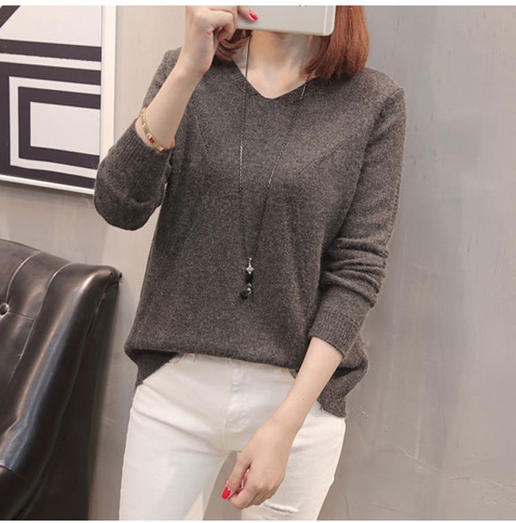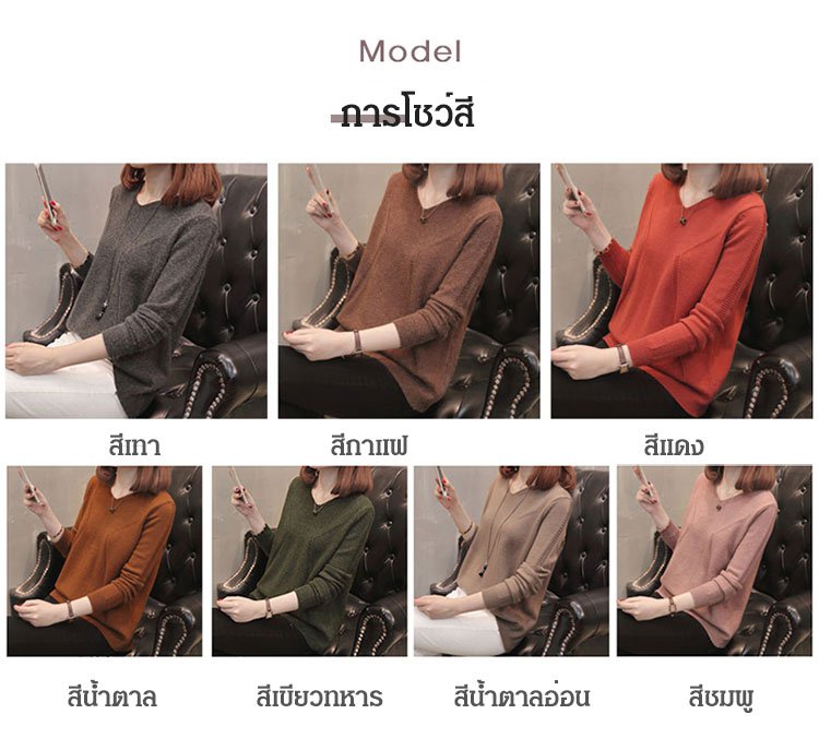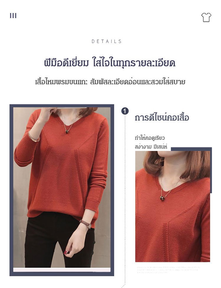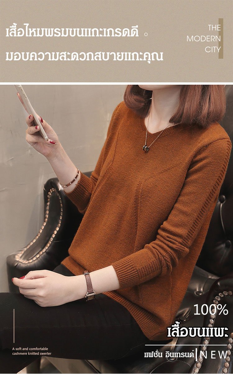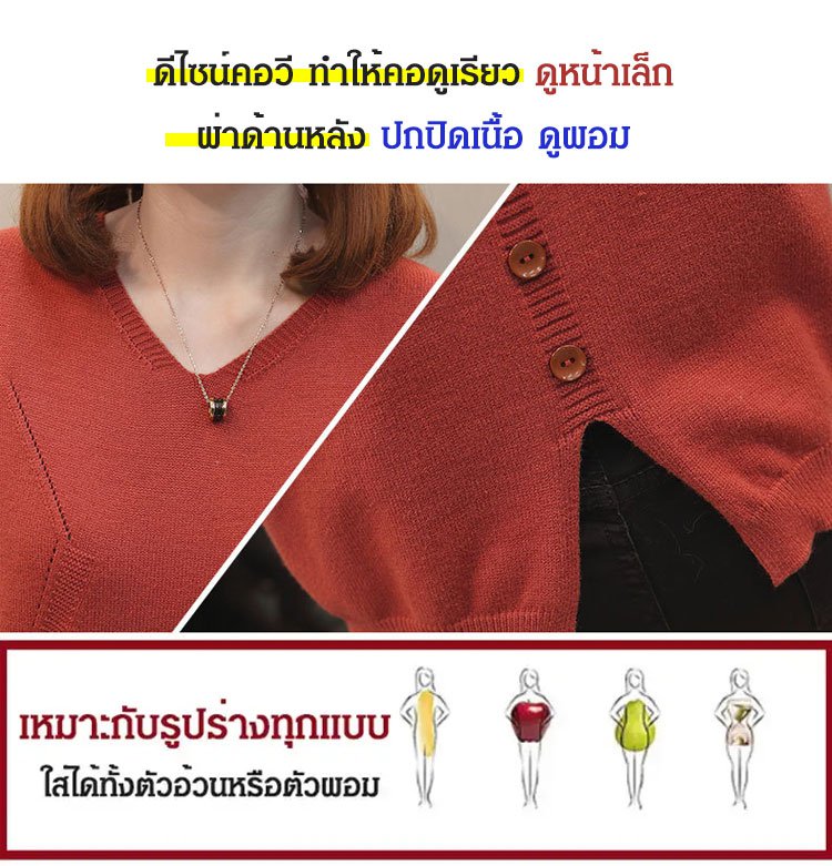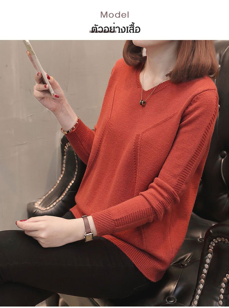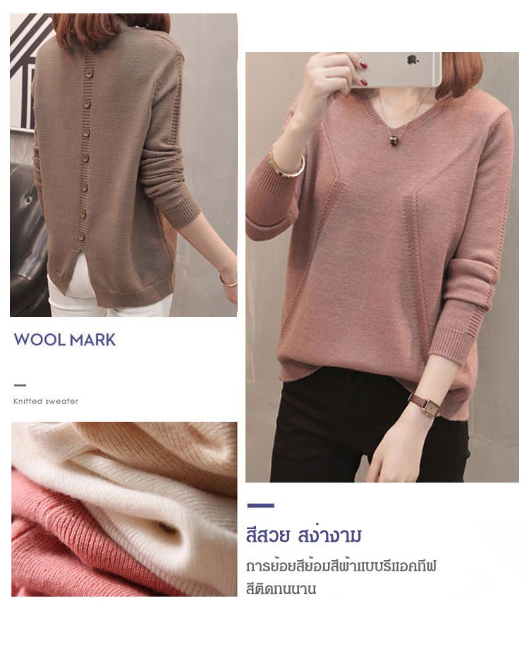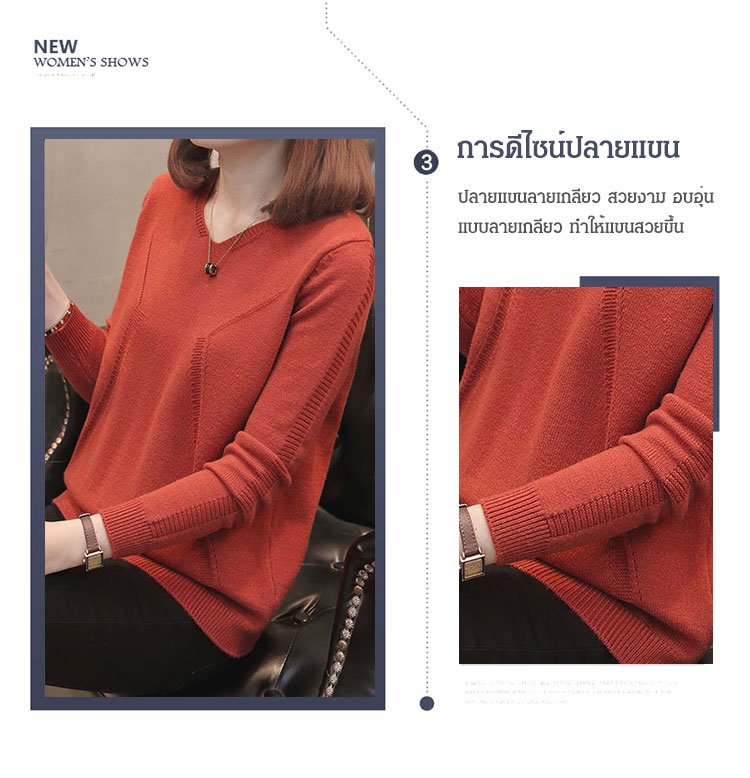 เสื้อไหมพรมคอวีสีพื้น แบบสวมหัว