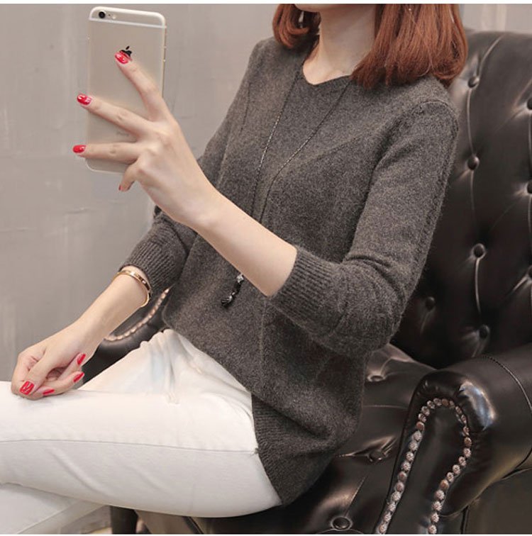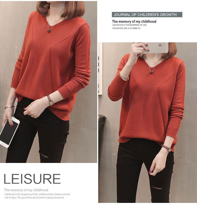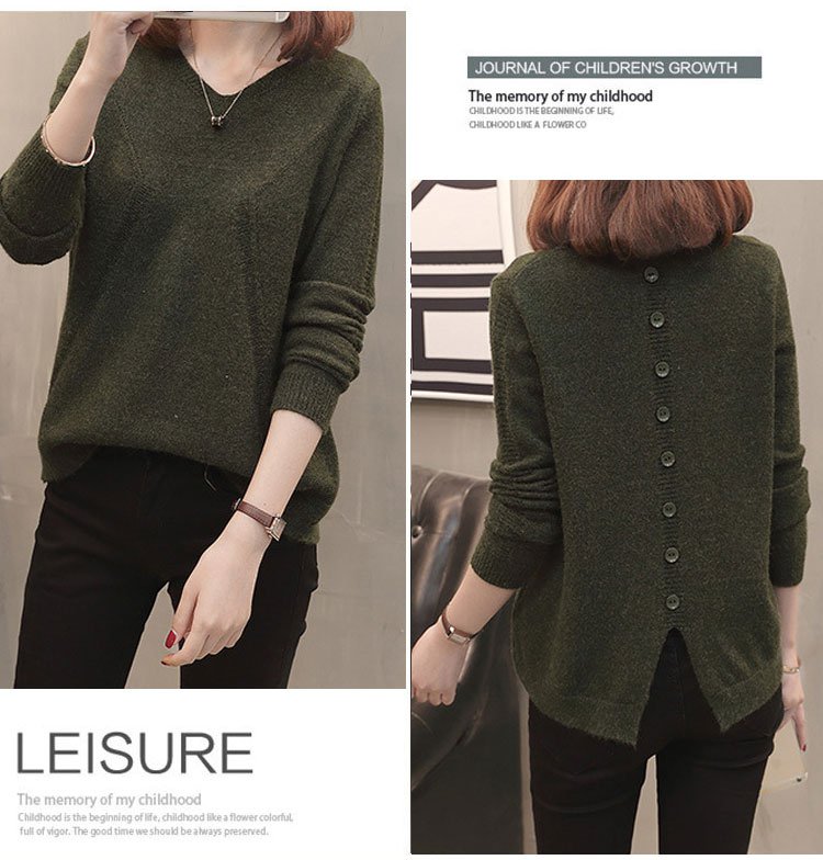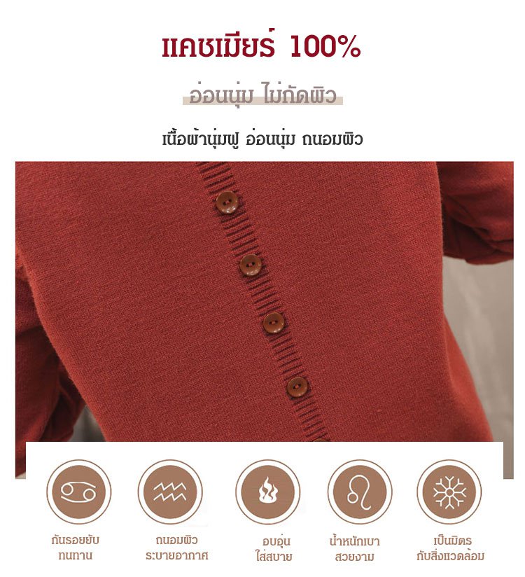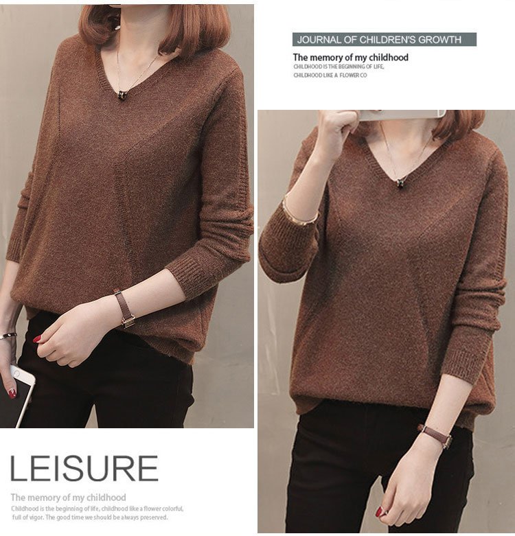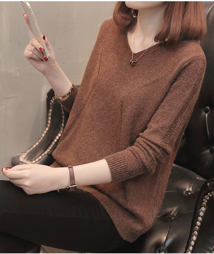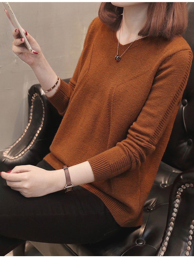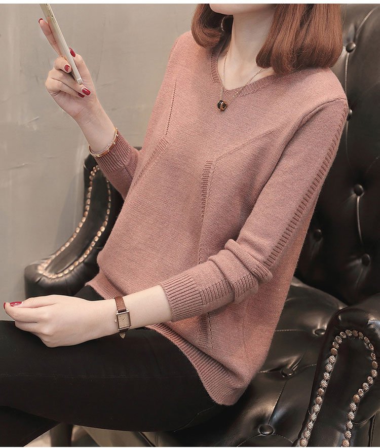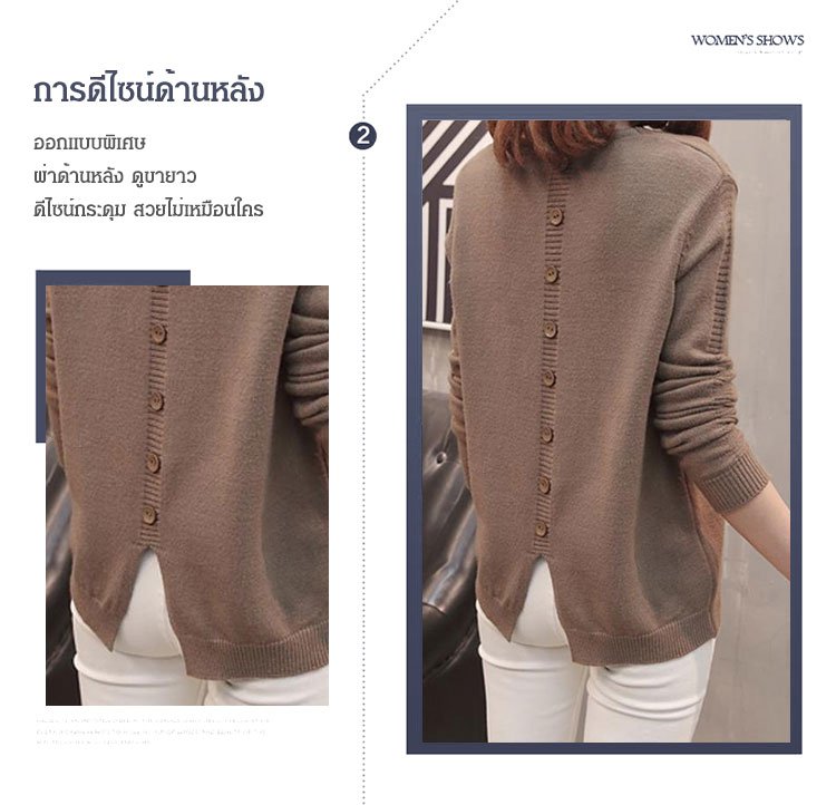 เสื้อไหมพรมคอวีสีพื้น แบบสวมหัว